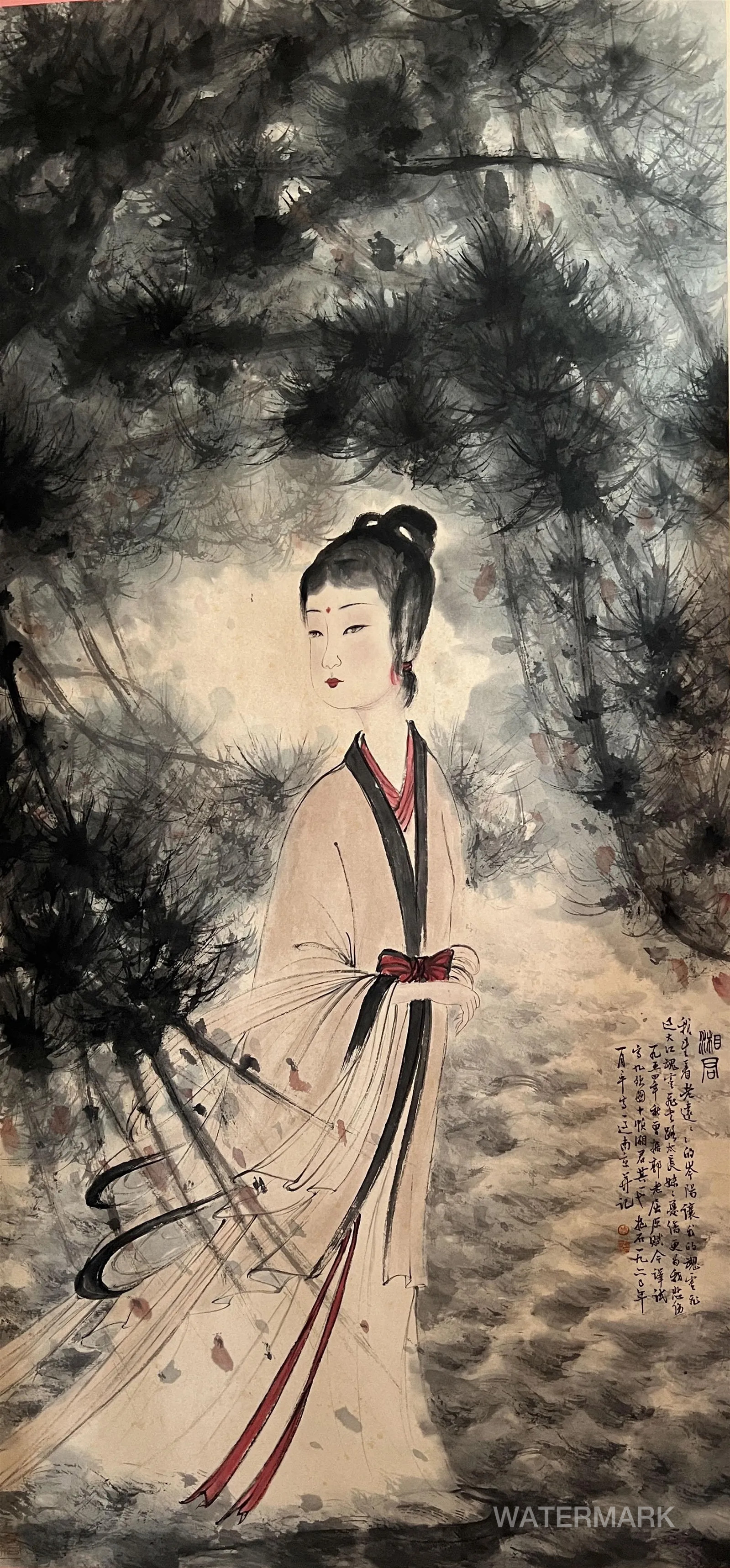 题识:一九五四年秋曾据郭老屈原赋今译试写九歌图十帧湘君其一也 抱石一九六零年一月率写一过南京并记